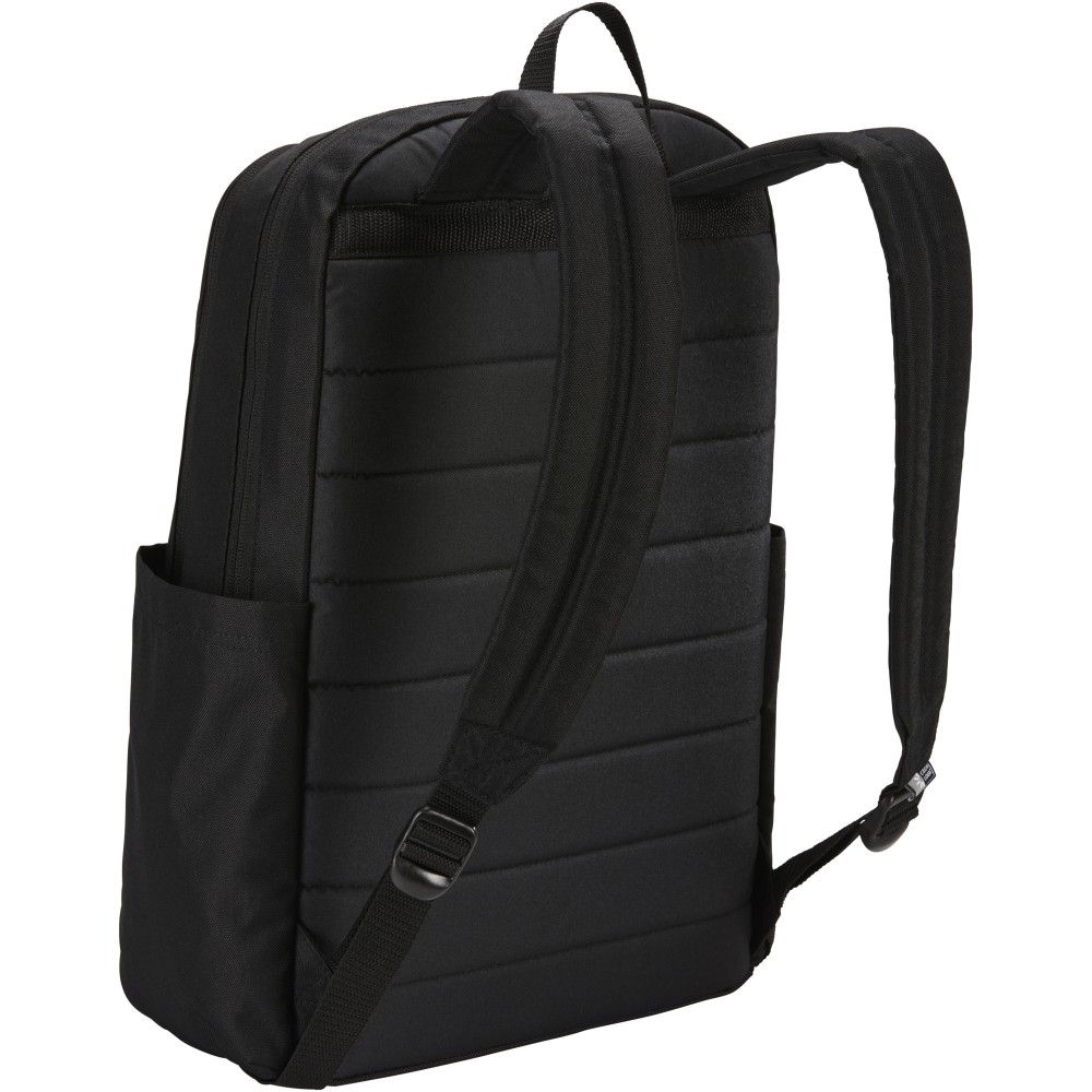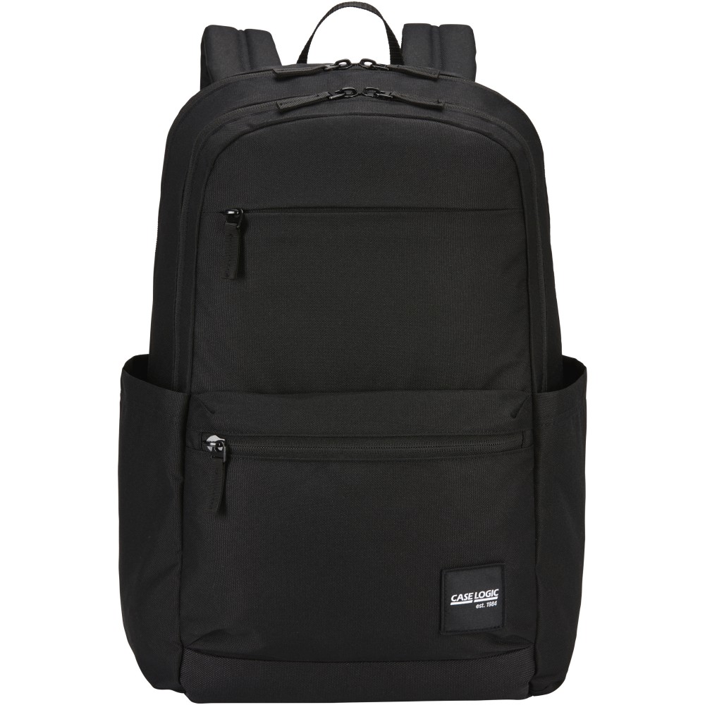 The Case Logic Uplink backpack has 26 litres of storage capacity including two large compartments, double front pockets, and plenty of organisation compartments. The backpack is made of 100% recycled 600D polyester body material combined with padded, durable 100% recycled 1200D polyester base. The contoured shoulder straps and a quilted, fully-padded back panel ensure a comfortable carry. Featuring a 15.6" padded laptop compartment, a 10" tablet sleeve, two large side pockets for a water bottle or other small items, and a front organisation pocket for small electronics, pens, and keys. The spacious main compartment is designed to fit books and folders and a secondary compartment for additional notebooks, headphones and personal items, plus a small zippered privacy pocket. The quick-access front pocket could store a phone and small accessories.