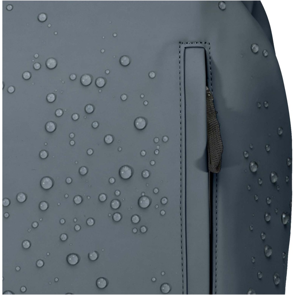 Crafted from premium GRS certified recycled PU leather with colour-matching RPET lining, this 15? anti-theft backpack keeps your belongings protected and dry on the go. It features a back-access laptop compartment, two streamlined side pockets, and a front zippered pocket with a waterproof zipper. A breathable back panel ensures all-day comfort, making it ideal for commuting, traveling, or urban adventures. Volume capacity: 18 litres.