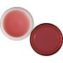 AS colored transparent jar with 12 g lip balm. The lip balm matches the color and is available in four flavors: vanilla (21), strawberry (08), orange (07) and blueberry (24).