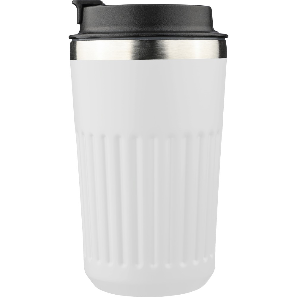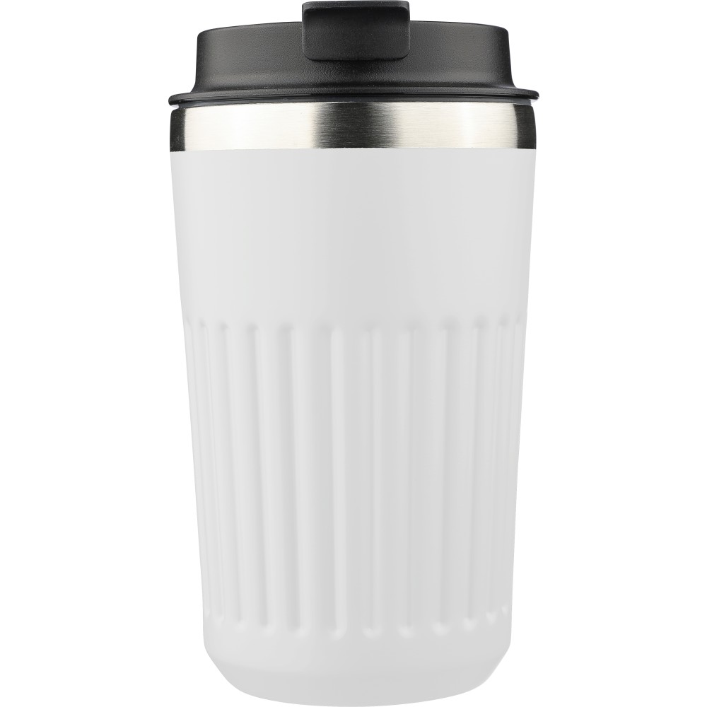 Recycled stainless steel travel mug (400 ml) Chiara, white