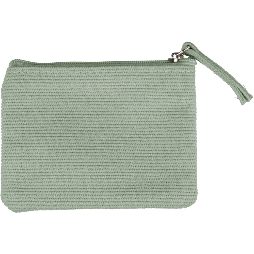 Corduroy zippered key wallet with secure zipper closing.