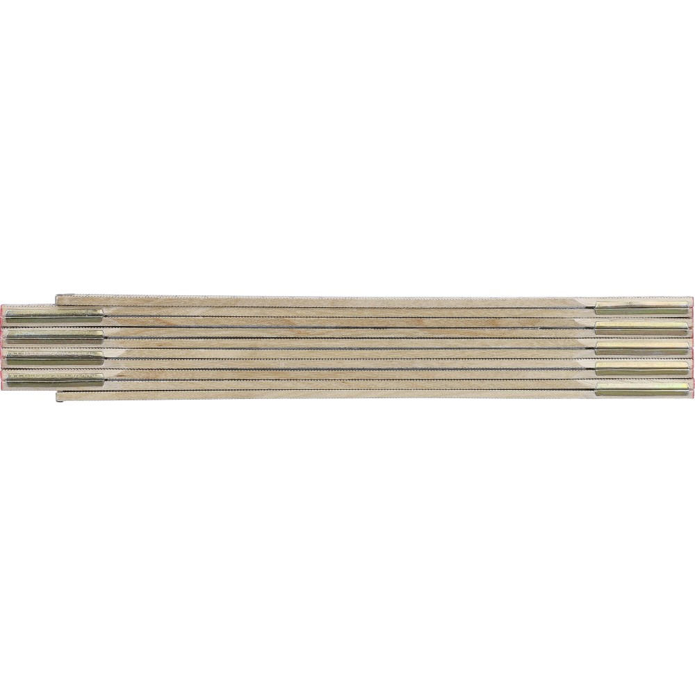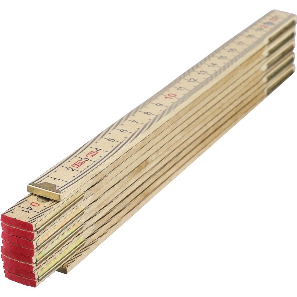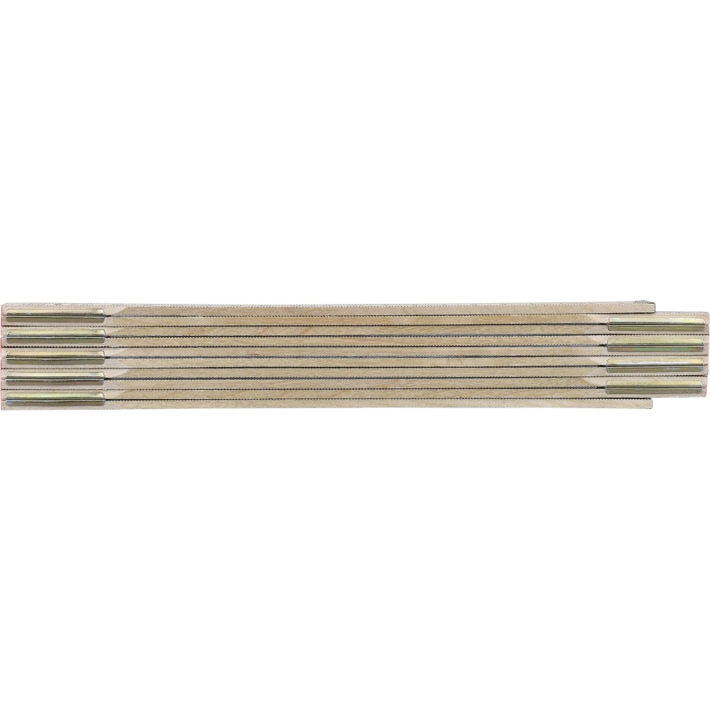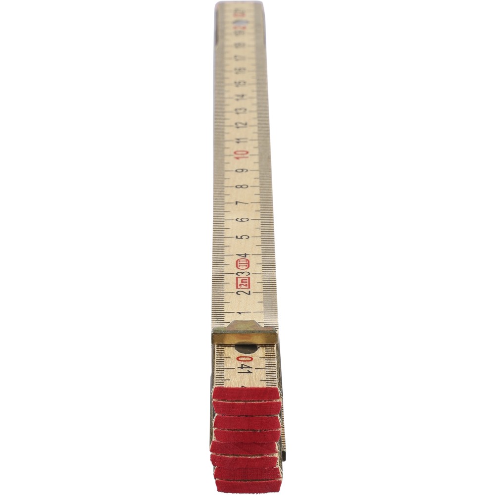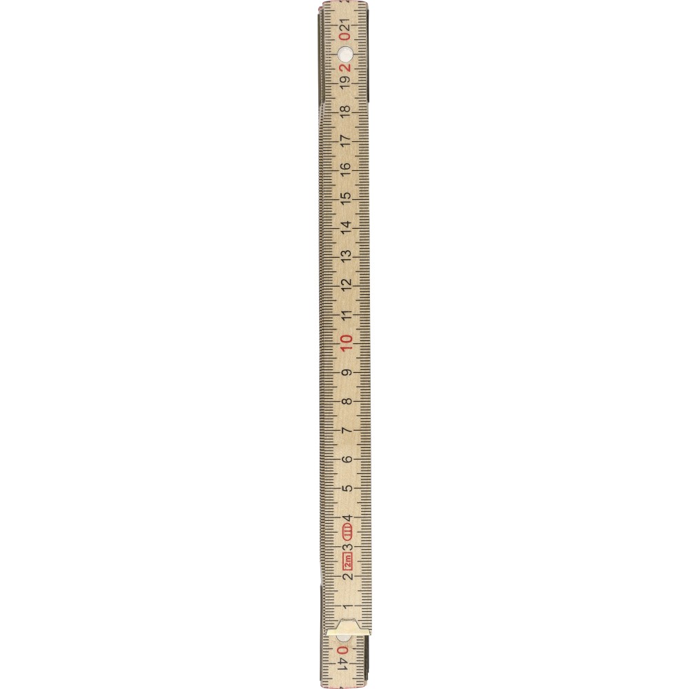 Birchwood foldable ruler with centimeter indication and 2 meter length. Consists of 10 segments with steel hinges for durability and stability, including a corner lock for secure use. Supplied in a paper sleeve.