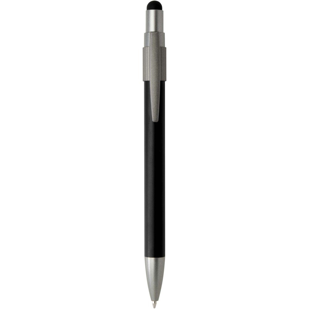Ballpoint pen with stylus and fidget spinner, combining practicality with a playful design. The pen is made from RCS certified recycled aluminium and features a smooth push mechanism and a stylus tip for touchscreen use. A built-in fidget spinner on top adds a stress-relieving touch (just flick to activate). Pen ink colour: black. Writing length: 1000 metres.