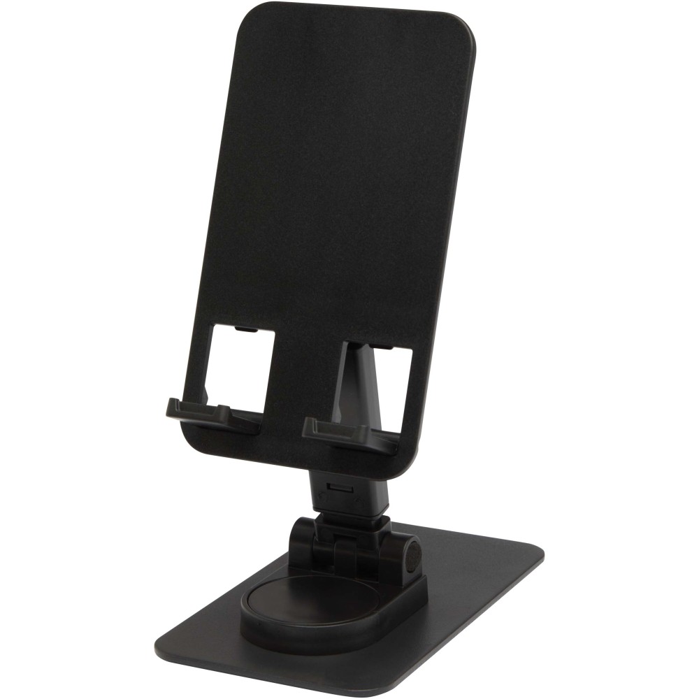 The Alhena phone holder is a desk accessory made from recycled plastic, with a sturdy metal base. The phone holder features adjustable angles and height, providing a comfortable and customisable viewing experience. Perfect for work or home use.