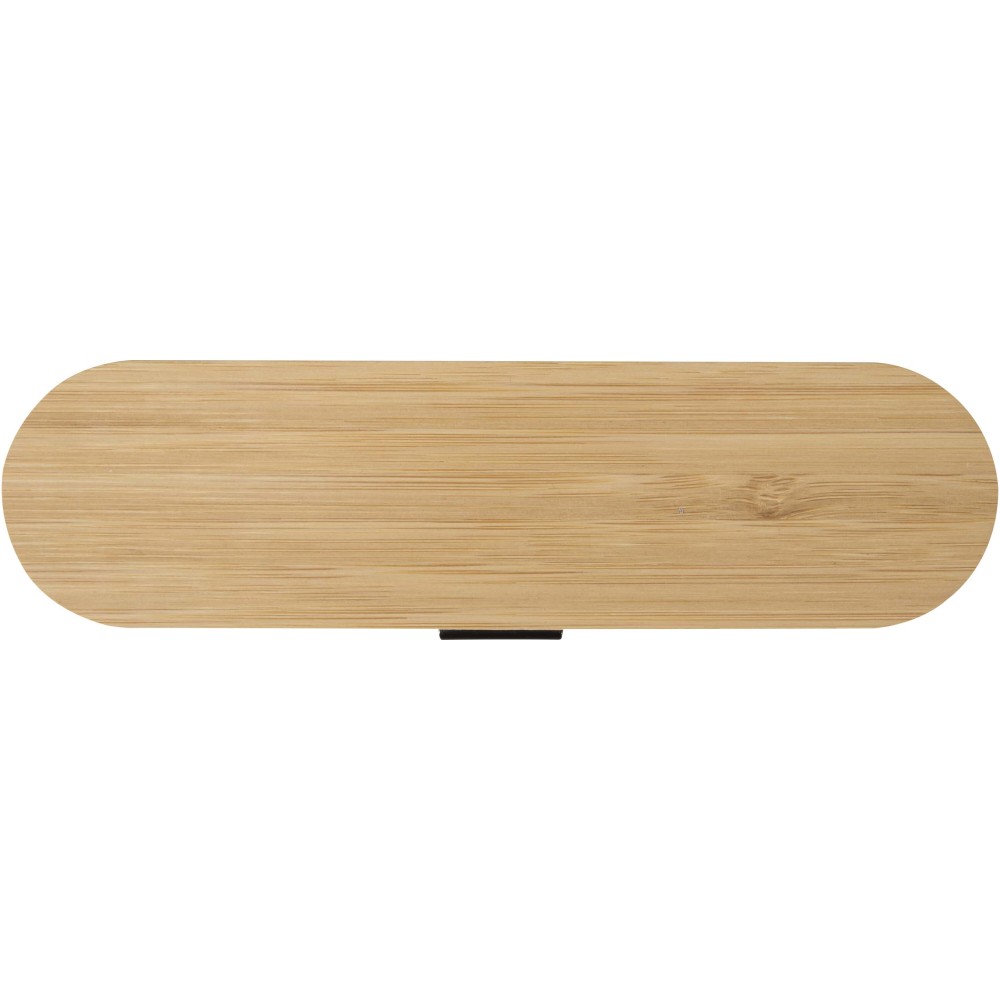 A reusable cutlery set with a bamboo lid, including a fork, knife, spoon, straw, and straw cleaner ? ideal for meals on the go. Compact and easy to clean, it?s perfect for lunch boxes, travel, or office use.