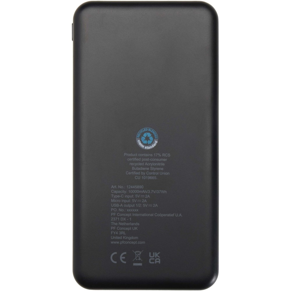 Intan 10.000 mAh 10W recycled plastic power bank, Solid blac