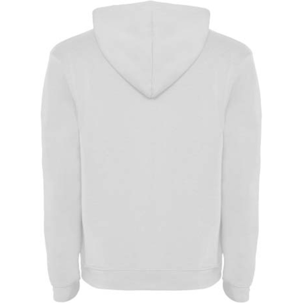 Hoodie with double fabric, adjustable drawcord, reinforced covered seams in collar and kangaroo style pocket. Available in uni-colours and two-tone colours. 1x1 elastane rib in cuffs and waistband. Removable label. The model is 185 cm and is wearing size M.