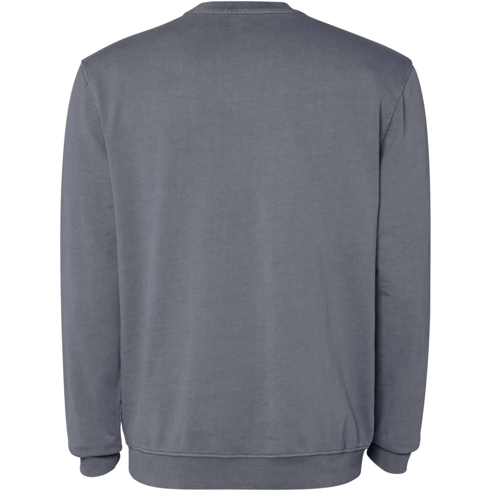 Unisex sweater with an acid-wash finish. 2x1 ribbed collar, cuffs and hem in tone. Reinforced seams at cuffs, hem, waistband and armholes. Tone-on-tone cover stitch at the neck.