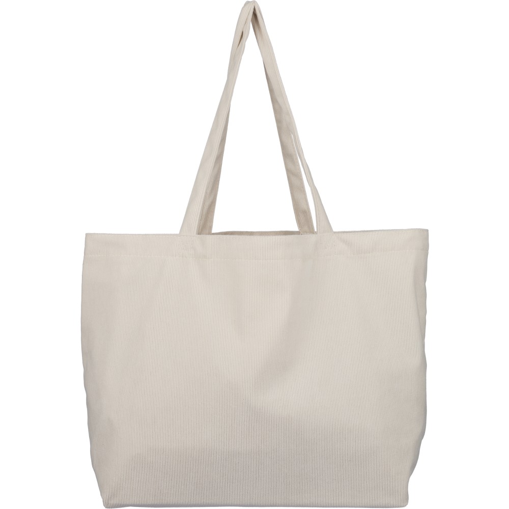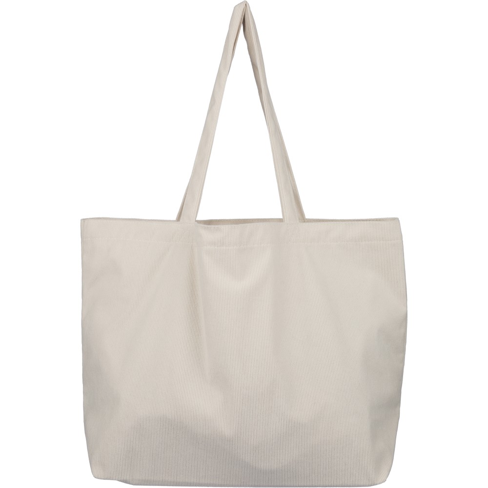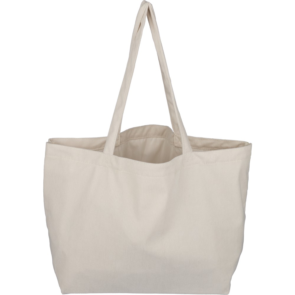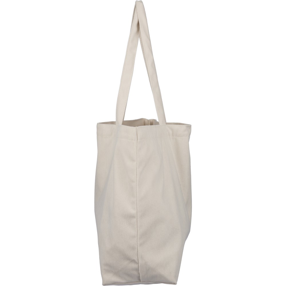 Corduroy tote bag with long handles (2.5 x 60 cm). Features a spacious main compartment with size 51 x 15 x 33 cm and an inside pocket (10 x 10 cm). Suitable for everyday use.