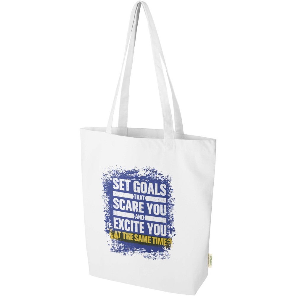 Made from 100% OCS certified 270 g/m2 organic cotton, the Odisha tote bag offers a durable and more responsible choice for everyday use. Its wide-bottom design provides extra space for essentials, making it suitable for any occasion from shopping trips to casual outings. The bag can hold up to 10 kilos of weight. Volume capacity: 10 litres.