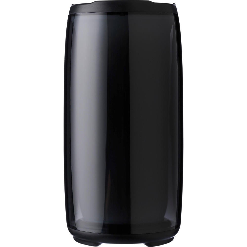ABS and PS outdoor speaker with multiple RGB light modes. IPX6 rated. 5W output, DC 5V input, 1200mAh built-in rechargeable battery, and 3.5 hours of playing time. Working distance of 15-20 meters, signal-to-noise ratio of 87 dB. Frequency range: 100 Hz to 20 kHz. Includes 30 cm Type-C charging cable. Wireless connection technology: 4.2. Individually packaged in a brown cardboard box.