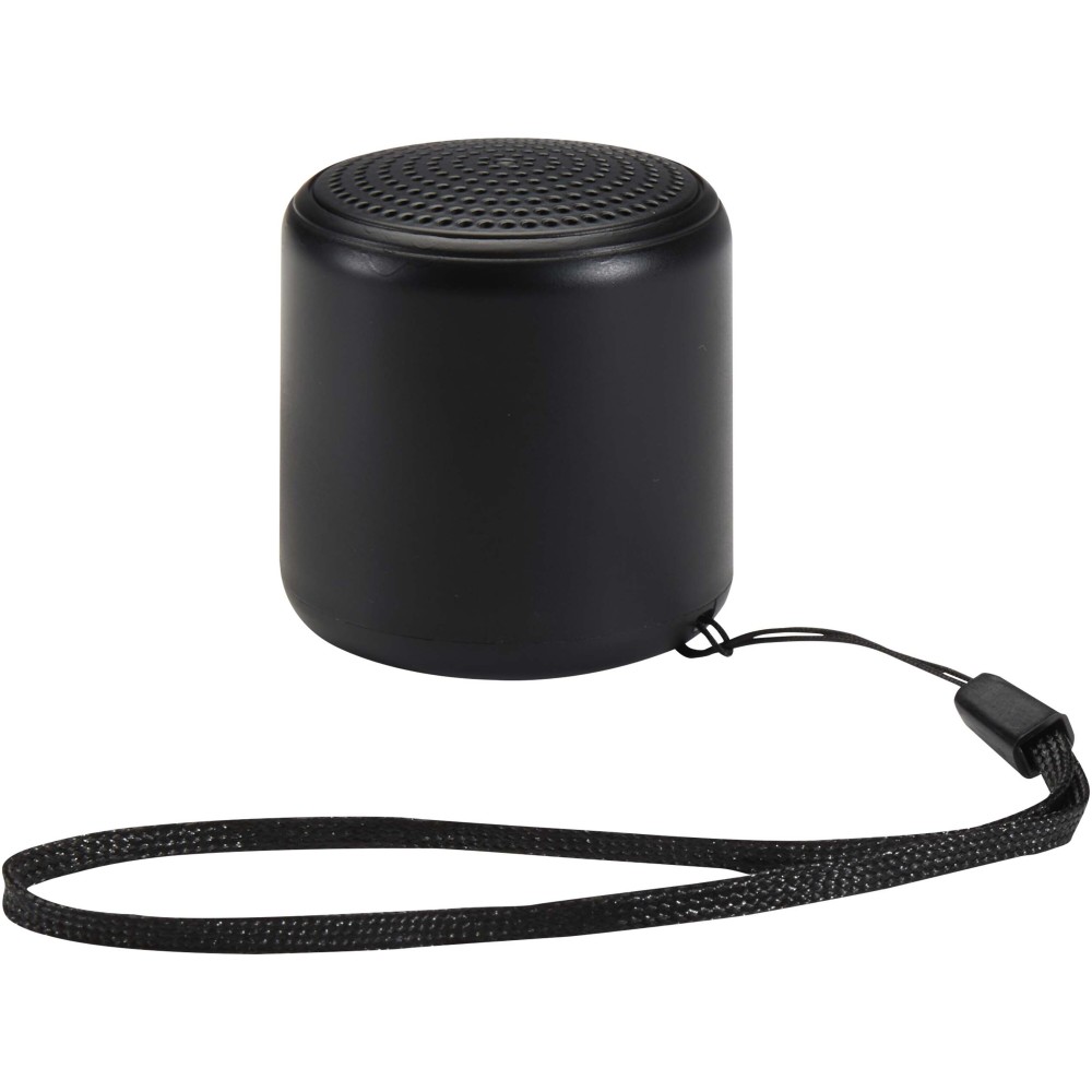 Take your music anywhere with the compact Velkis Bluetooth® 3W speaker. Made from recycled plastic, it features a convenient wrist strap and simple one-button control. With a 300 mAh battery and Type-C charging, it offers the perfect portable audio solution. A 30 cm USB-A to Type-C charging cable is included.