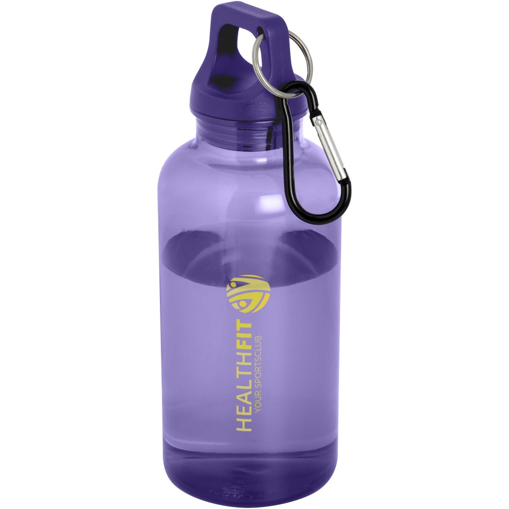 Staying hydrated at all times is possible with this durable yet lightweight 400 ml water bottle made from recycled plastic. It is the perfect companion while exercising, on day trips or at the office. The single walled Oregon bottle has a twist-on lid and offers plenty of space to add any kind of logo. Clip the attached carabiner (not suitable for climbing) securely to a bag to avoid losing it. BPA Free and tested and approved under German Food Safe Legislation (LFGB) and for phthalates content under REACH. The lid and body are composed of 100% recycled plastic.