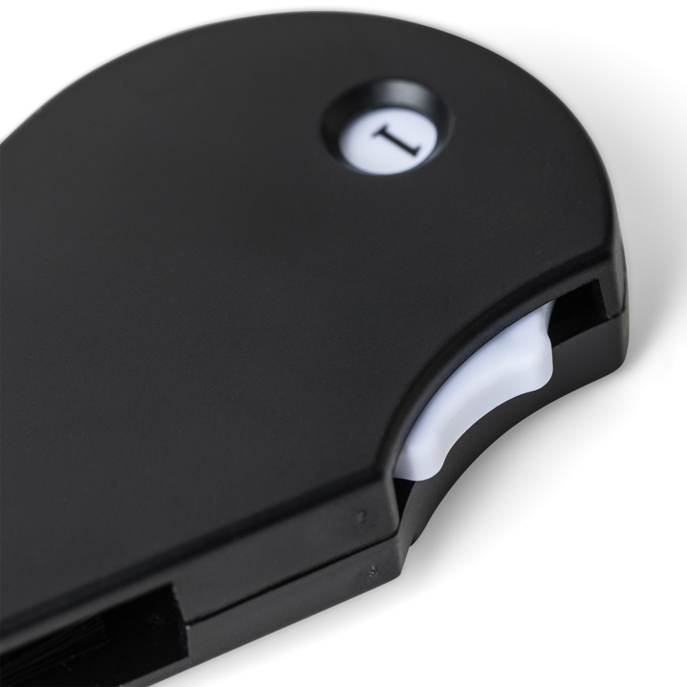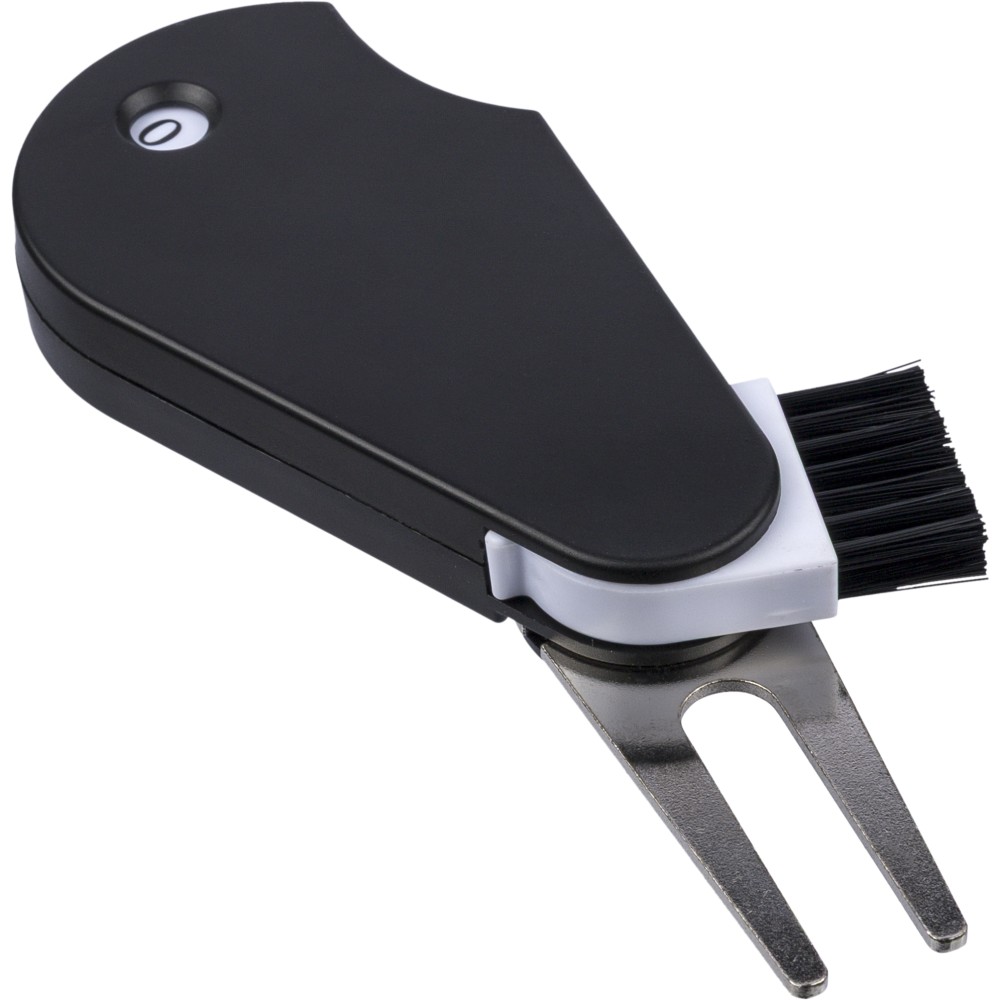 Recycled ABS multifunctional golf tool with integrated marker, pitch fork, cleaning brush, and score counter. Features a Recycled ABS logo on the backside. Packed in a recycled polybag.