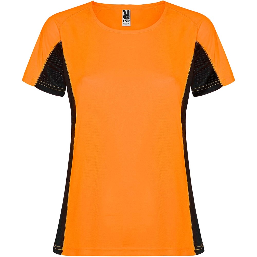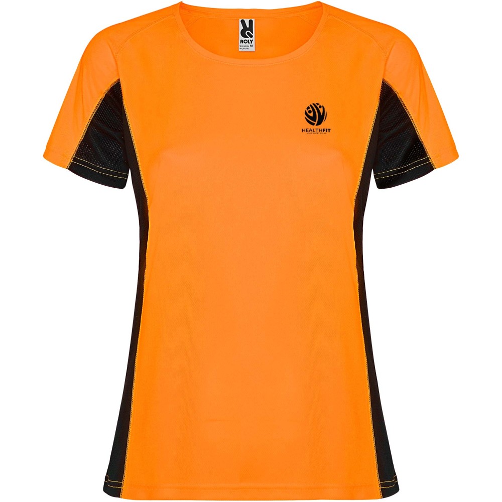 Shanghai short sleeve women's sports t-shirt, Fluor Orange, Black