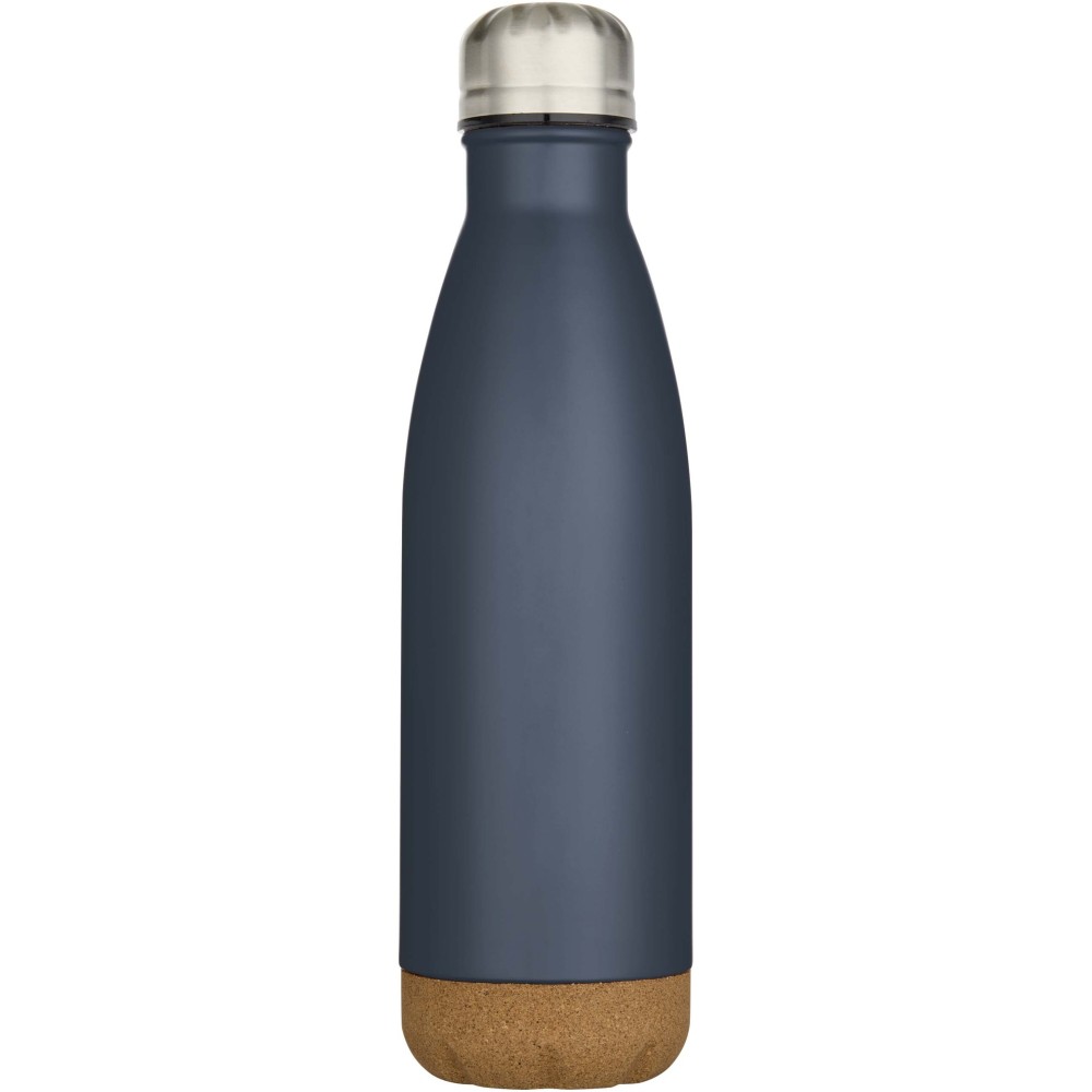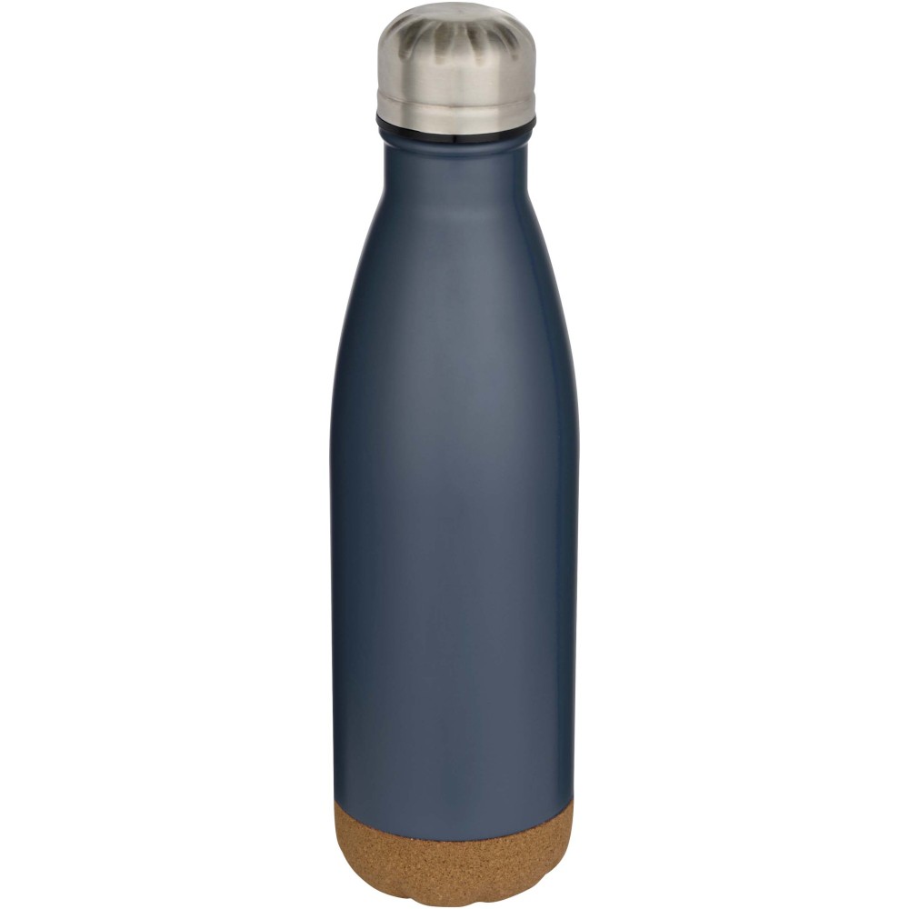Vacuum insulated stainless steel water bottle with cork details at the bottom. The double-wall insulation keeps drinks hot for 12 hours and cold for 48 hours. Presented in a recycled cardboard gift box. Volume capacity: 500 ml.