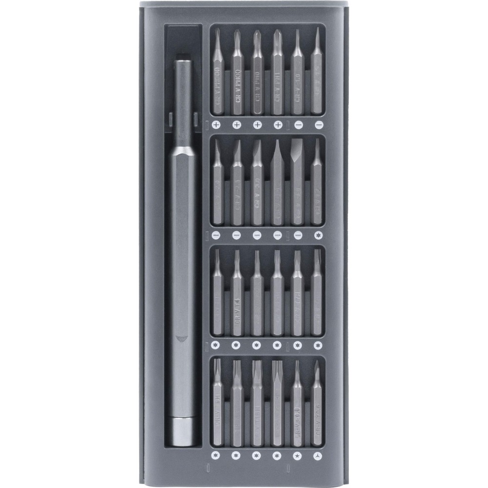 The Everybit Lite multi-tool is perfect for repairing a wide range of devices, including smartphones, MacBooks, iPads, electronics, watches, cameras, laptops, eyeglasses, circuit boards, toys, PCs, and game consoles. It features 24 magnetic precision bits made from durable CRV steel and an aluminum alloy handle for a comfortable grip. Ideal for all your repair needs.