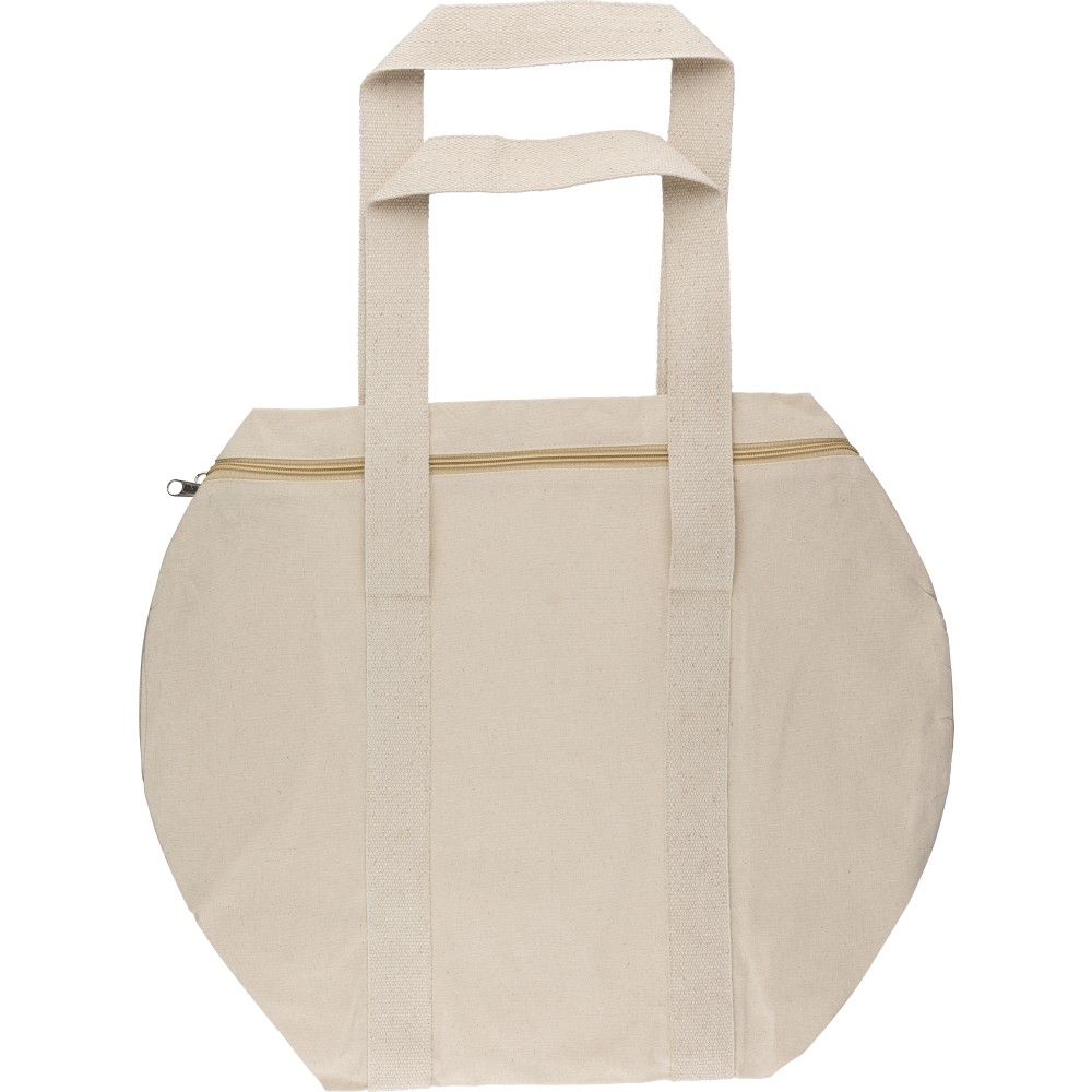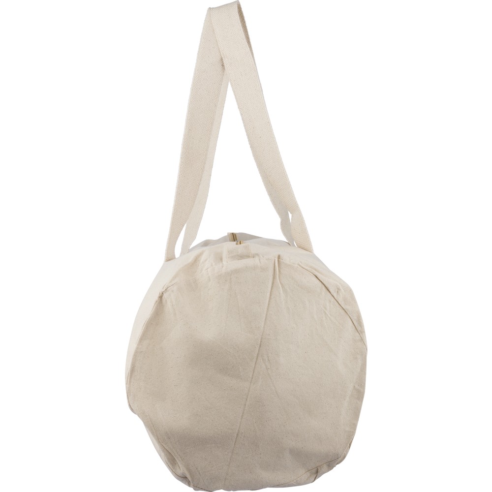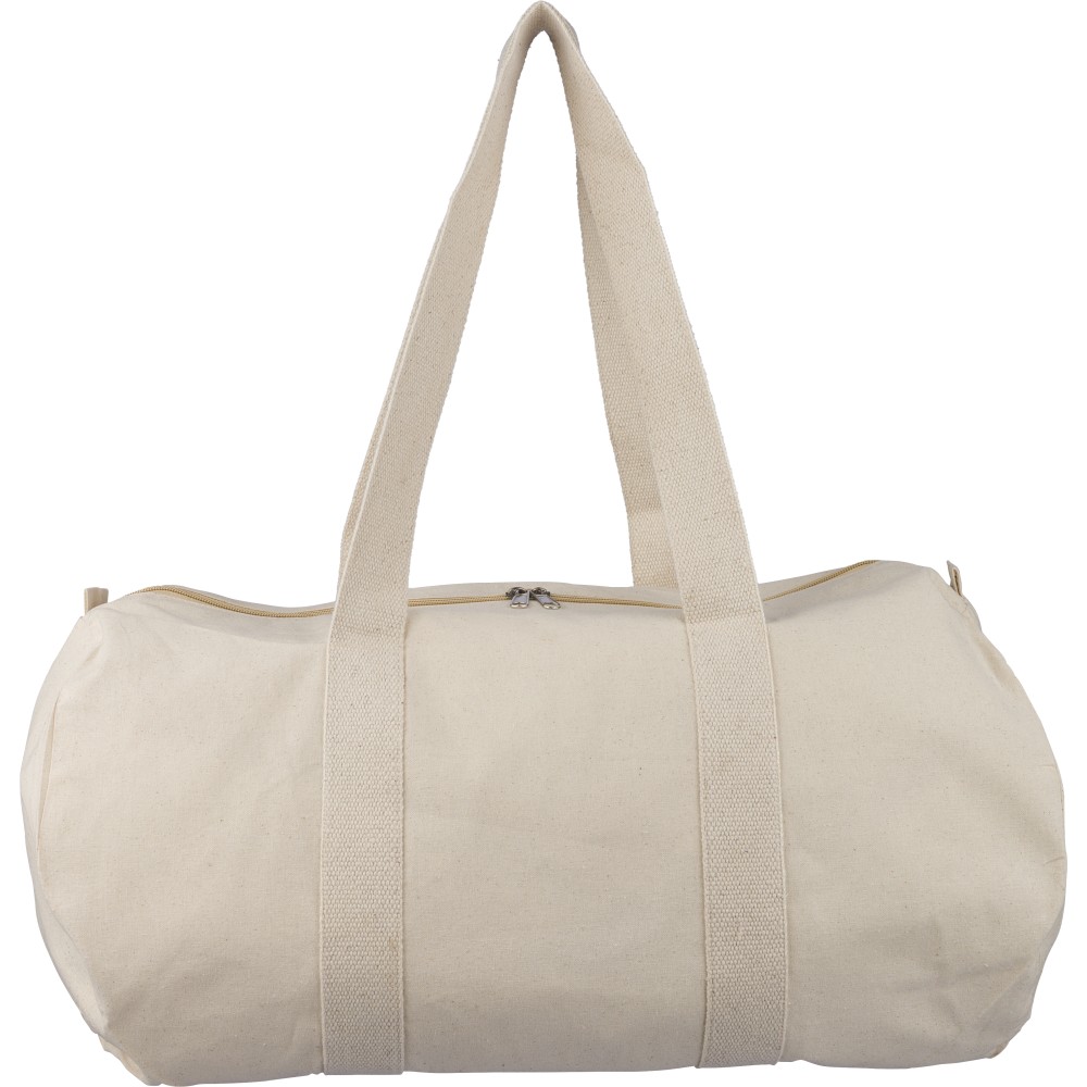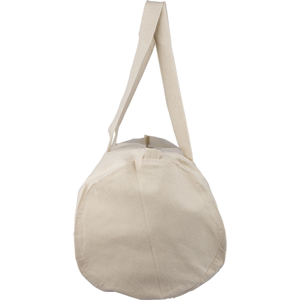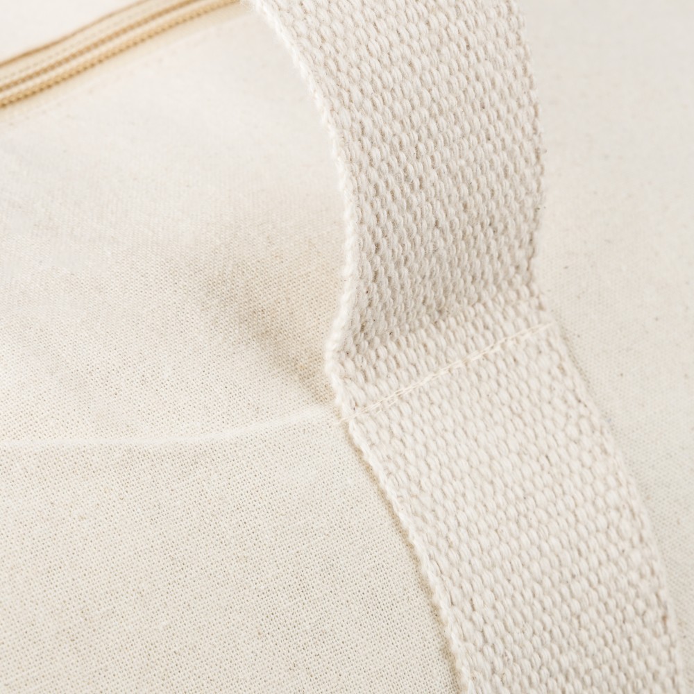 Oeko-Tex® cotton (180 gsm) natural zippered duffle bag with 60 cm natural cotton handles (5 cm width). Includes Oeko-Tex® label.