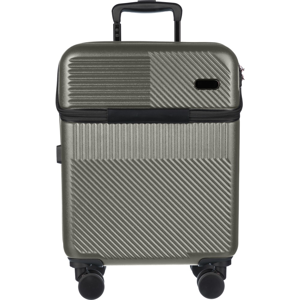 ABS luggage trolley (20 inch) with front zippered laptop pocket, 8 wheels, and three-level handle system. Includes number lock and separate plate for laser engraving. With USB port.