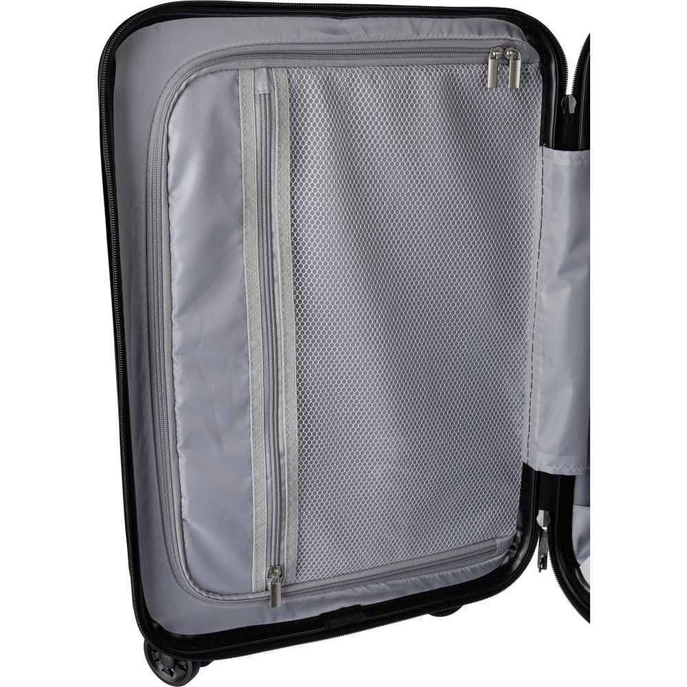 ABS luggage trolley (20 inch) with 8 wheels and a three-level handle system. Includes number lock and a separate plate for laser engraving.