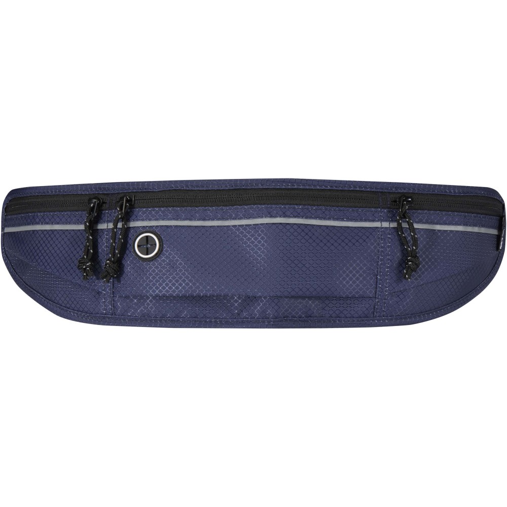 The Nomad running waist pack is made from GRS certified recycled ripstop fabric with a water-repellent finish, GRS certified RPET lining, and reflective elements. It is a compact and lightweight solution for running, hiking, or other outdoor activities. The waist pack features three zipped pockets to keep your phone, earbuds, keys, and other items organised and separate. Reflective details improve visibility during early morning or evening use. The back is made with lightweight, moisture-wicking mesh to increase airflow and reduce sweat build-up. An adjustable, elastic waistband ensures a secure and comfortable fit during movement.