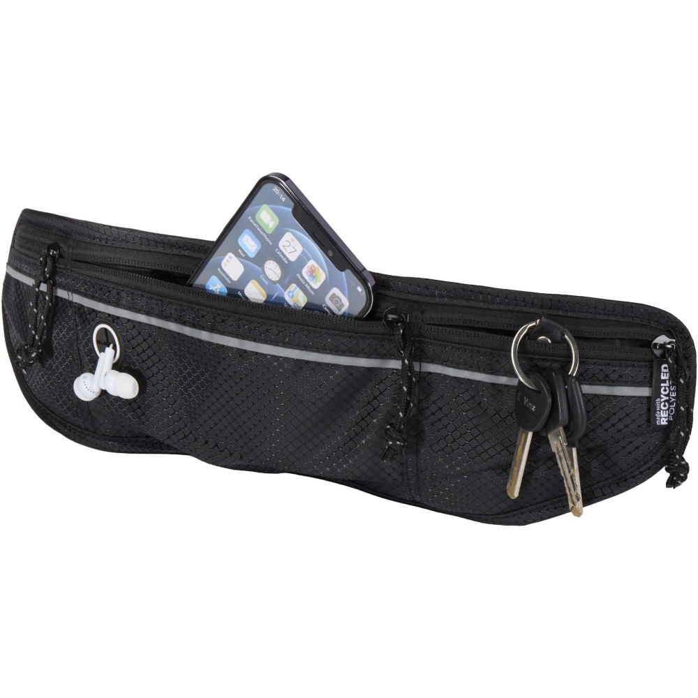 The Nomad running waist pack is made from GRS certified recycled ripstop fabric with a water-repellent finish, GRS certified RPET lining, and reflective elements. It is a compact and lightweight solution for running, hiking, or other outdoor activities. The waist pack features three zipped pockets to keep your phone, earbuds, keys, and other items organised and separate. Reflective details improve visibility during early morning or evening use. The back is made with lightweight, moisture-wicking mesh to increase airflow and reduce sweat build-up. An adjustable, elastic waistband ensures a secure and comfortable fit during movement.
